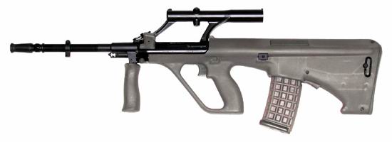 Steyr AUG (Armee Universalgewehr) to austriacki karabinek automatyczny skonstruowany jako następca karabinu automatycznego StG 58 (odmiana FN FAL). Założenia dla nowej broni powstały pod koniec lat 60. w autriackim Biurze Uzbrojenia i Techniki Wojskowej. Zakładano że w nowej broni będzie możliwość łatwej wymiany lufy, aby umożliwić przekształcenie broni w subkarabinek, karabinek automatyczny, karabinek maszynowy oraz karabinek wyborowy. Początkowo karabinek miał strzelać ogniem pojedynczym z zamka zamkniętego, natomiast ogniem ciągłym z zamka otwartego, jednak ostatecznie większość odmian strzela jedynie z zamka zamkniętego. Karabinek miał być wyposażony w mechaniczny celownik z przeziernikiem umieszczony na górnej powierzchni chwytu transportowego, jednak w broni produkowanej seryjnie zastosowano chwyt transportowy z wkomponowanym celownikiem optycznym. Broń charakteryzuje się układem bez kolby właściwej (Bull pup). Karabinek został wprowadzony do uzbrojenia armii autriackiej w 1977r.